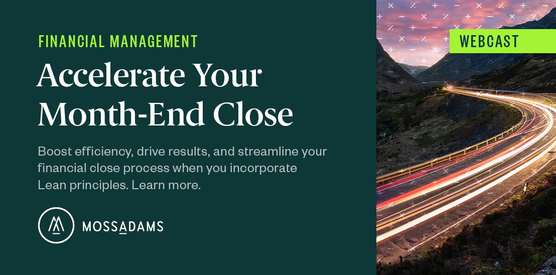 View our webcast, Accelerate Your Month-End Close with Lean Principles, where industry leaders Steve Fineberg, partner at Moss Adams, and Lean professional Rishi Malhotra will share actionable insights and real-world strategies tailored for finance executives.