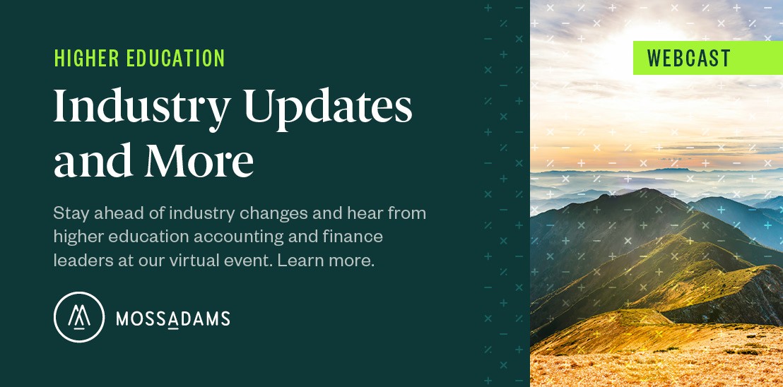 Watch the next edition of our Higher Education Virtual Town Hall, an information exchange for higher education accounting and finance leaders. This is a great opportunity to stay updated on industry changes while connecting with peers.