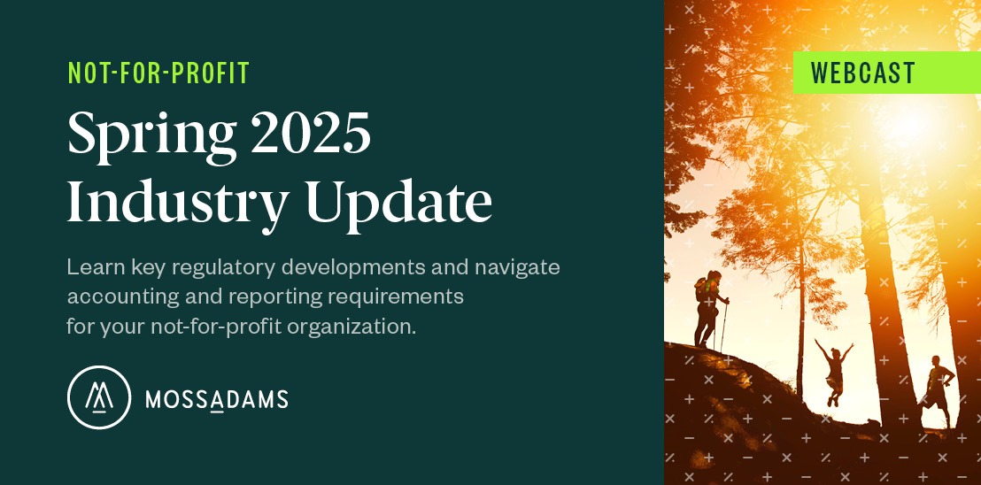 View our webcast, Spring 2025 Not-for-Profit Accounting and Auditing Update. We’ll discuss what we’ve learned from newly adopted accounting and auditing standards and areas critical to not-for-profit organizations.