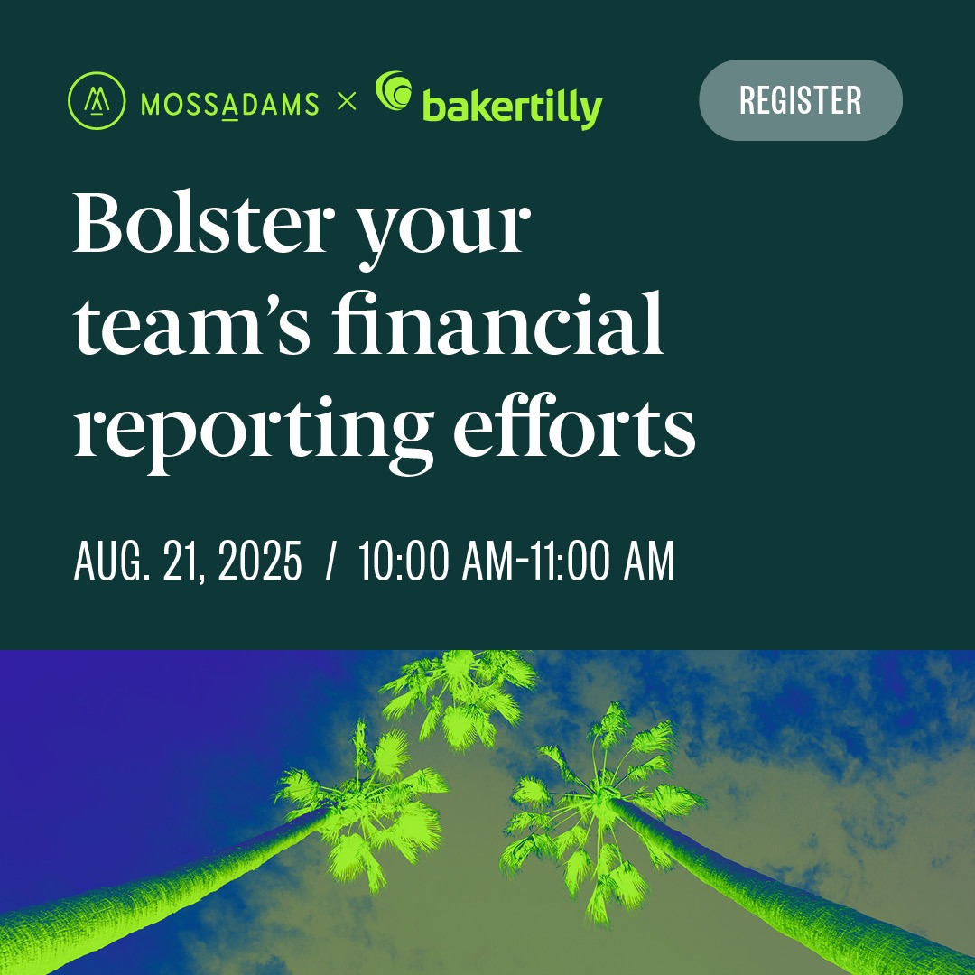 Baker Tilly US, LLP, Baker Tilly Advisory Group, LP and Moss Adams LLP and their affiliated entities operate under an alternative practice structure in accordance with the AICPA Code of Professional Conduct and applicable laws, regulations and professional standards. Baker Tilly Advisory Group, LP and its subsidiaries, and Baker Tilly US, LLP and its affiliated entities, trading as Baker Tilly, are members of the global network of Baker Tilly International Ltd., the members of which are separate and independent legal entities. Baker Tilly US, LLP and Moss Adams LLP are licensed CPA firms that provide assurance services to their clients. Baker Tilly Advisory Group, LP and its subsidiary entities provide tax and consulting services to their clients and are not licensed CPA firms. ISO certification services offered through Moss Adams Certifications LLC. Investment advisory offered through either Moss Adams Wealth Advisors LLC or Baker Tilly Wealth Management, LLC.
