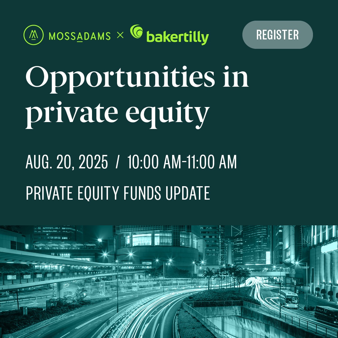 Join us for our annual private equity funds webcast to help navigate this period of uncertainty and opportunity. Get insights into accounting, tax, regulatory changes, and more.