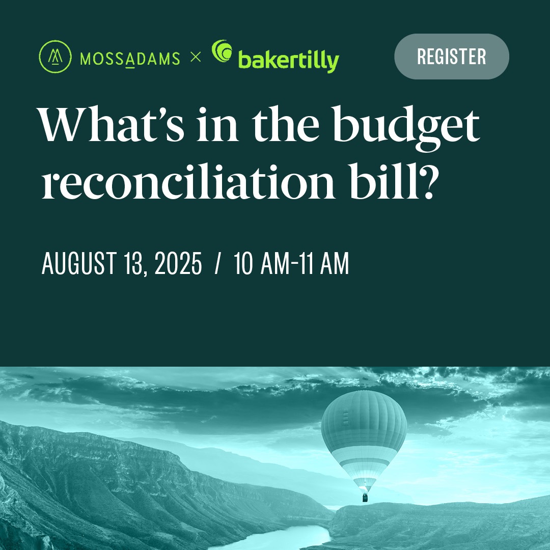 Baker Tilly US, LLP, Baker Tilly Advisory Group, LP and Moss Adams LLP and their affiliated entities operate under an alternative practice structure in accordance with the AICPA Code of Professional Conduct and applicable laws, regulations and professional standards. Baker Tilly Advisory Group, LP and its subsidiaries, and Baker Tilly US, LLP and its affiliated entities, trading as Baker Tilly, are members of the global network of Baker Tilly International Ltd., the members of which are separate and independent legal entities. Baker Tilly US, LLP and Moss Adams LLP are licensed CPA firms that provide assurance services to their clients. Baker Tilly Advisory Group, LP and its subsidiary entities provide tax and consulting services to their clients and are not licensed CPA firms. ISO certification services offered through Moss Adams Certifications LLC. Investment advisory offered through either Moss Adams Wealth Advisors LLC or Baker Tilly Wealth Management, LLC.