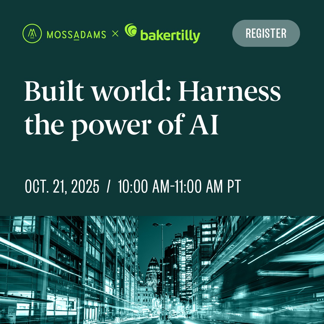 View our webcast, How AI Is Reshaping the Built World, as a panel of industry leaders share how their organizations are integrating AI to streamline operations, optimize design and planning, enhance investment decisions, and drive smarter decision-making.