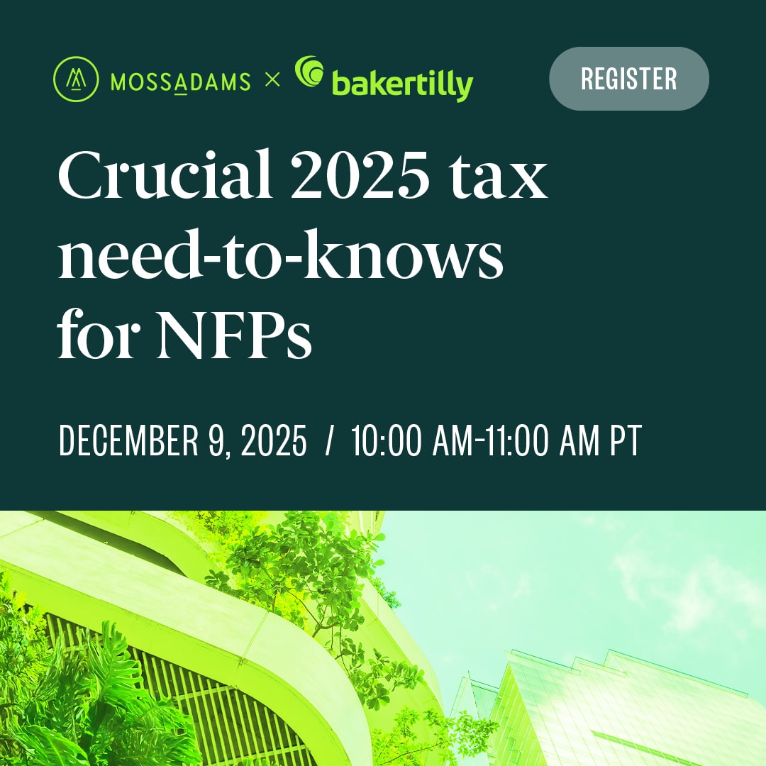 Baker Tilly US, LLP, Baker Tilly Advisory Group, LP and Moss Adams LLP and their affiliated entities operate under an alternative practice structure in accordance with the AICPA Code of Professional Conduct and applicable laws, regulations and professional standards. Baker Tilly Advisory Group, LP and its subsidiaries, and Baker Tilly US, LLP and its affiliated entities, trading as Baker Tilly, are members of the global network of Baker Tilly International Ltd., the members of which are separate and independent legal entities. Baker Tilly US, LLP and Moss Adams LLP are licensed CPA firms that provide assurance services to their clients. Baker Tilly Advisory Group, LP and its subsidiary entities provide tax and consulting services to their clients and are not licensed CPA firms. ISO certification services offered through Moss Adams Certifications LLC. Investment advisory offered through either Moss Adams Wealth Advisors LLC or Baker Tilly Wealth Management, LLC.