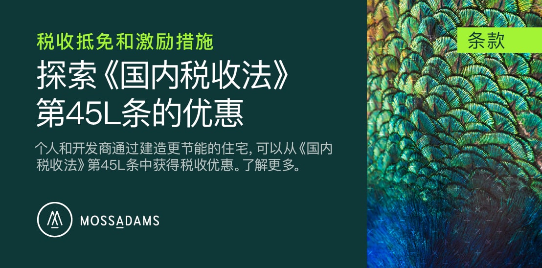 如果您有关于如何从第45L节税收抵免中获益的问题,请联系您的Moss Adams专业人士。